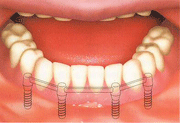 人口歯根を何本か埋めることによって、入れ歯を安定させることができます。