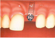 ブリッジの土台にするための歯がないため、人口歯根を顎の骨に埋め込み、ブリッジの土台として歯を被せることができます。